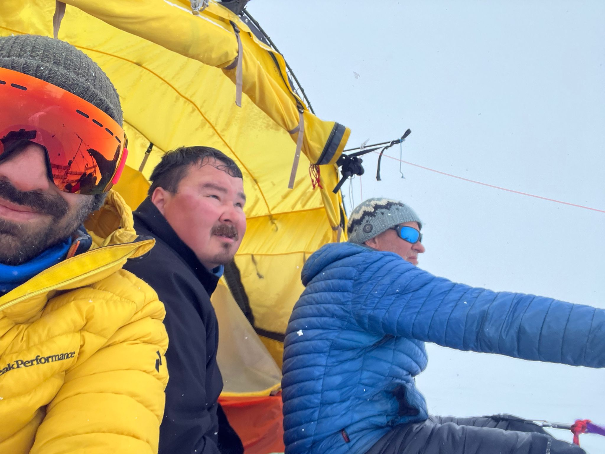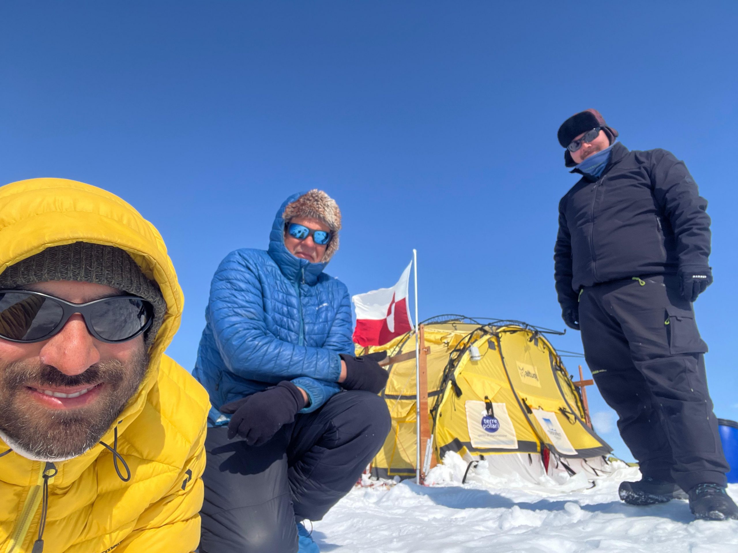 The expedition was led by Ramón Larramendi, creator of the Inuit Windsled and a pioneer in sustainable polar travel. He was joined by Jens Jacob Simonsen experienced Greenland explorer and Antonio Mangia Italian guide. The team collaborates with the National Research Council of Italy (CNR-ISP) and the University of Maine, collecting atmospheric and snow samples during their journey to study changes in the Arctic climate.