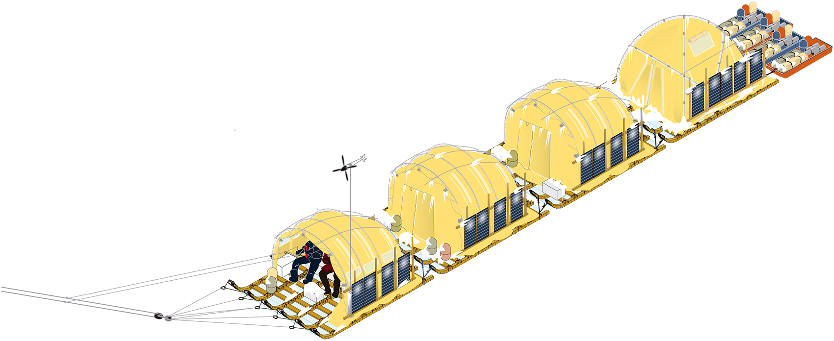 The new Windsled, which increased scientific potential, consisted of a convoy of four articulated segments capable of carrying eight crew members and approximately three tons of cargo—an increase from the 2.2 tons of previous versions. Additionally, for the first time, it featured an advanced electrification system based on solar panels.